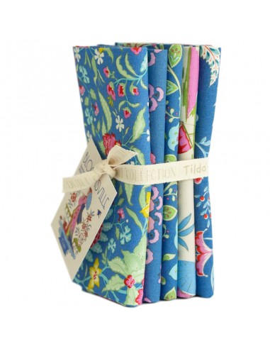Tilda Bloomsville Blueberry Dove - Bundle 5 Fat Quarter Blu e Bianchi 50 x 55 cm