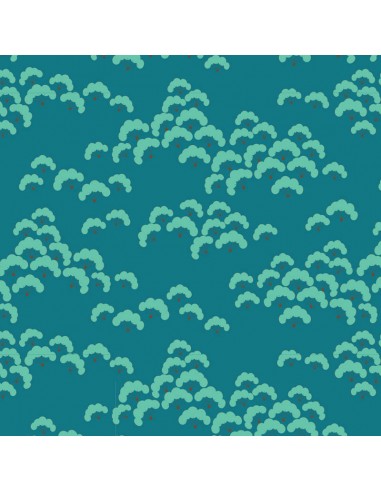 Tilda Bloomsville Cottonbloom Petrol - Tessuto Verde Petrolio con fiori di cotone