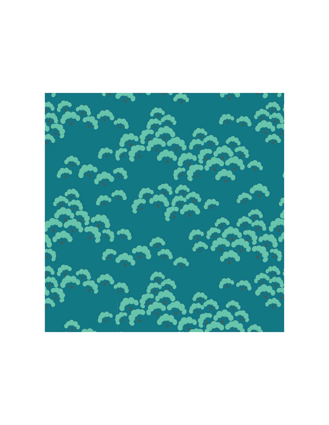 - Tessuto Fondo Verde Petrolio con piccoli fiori di cotone.