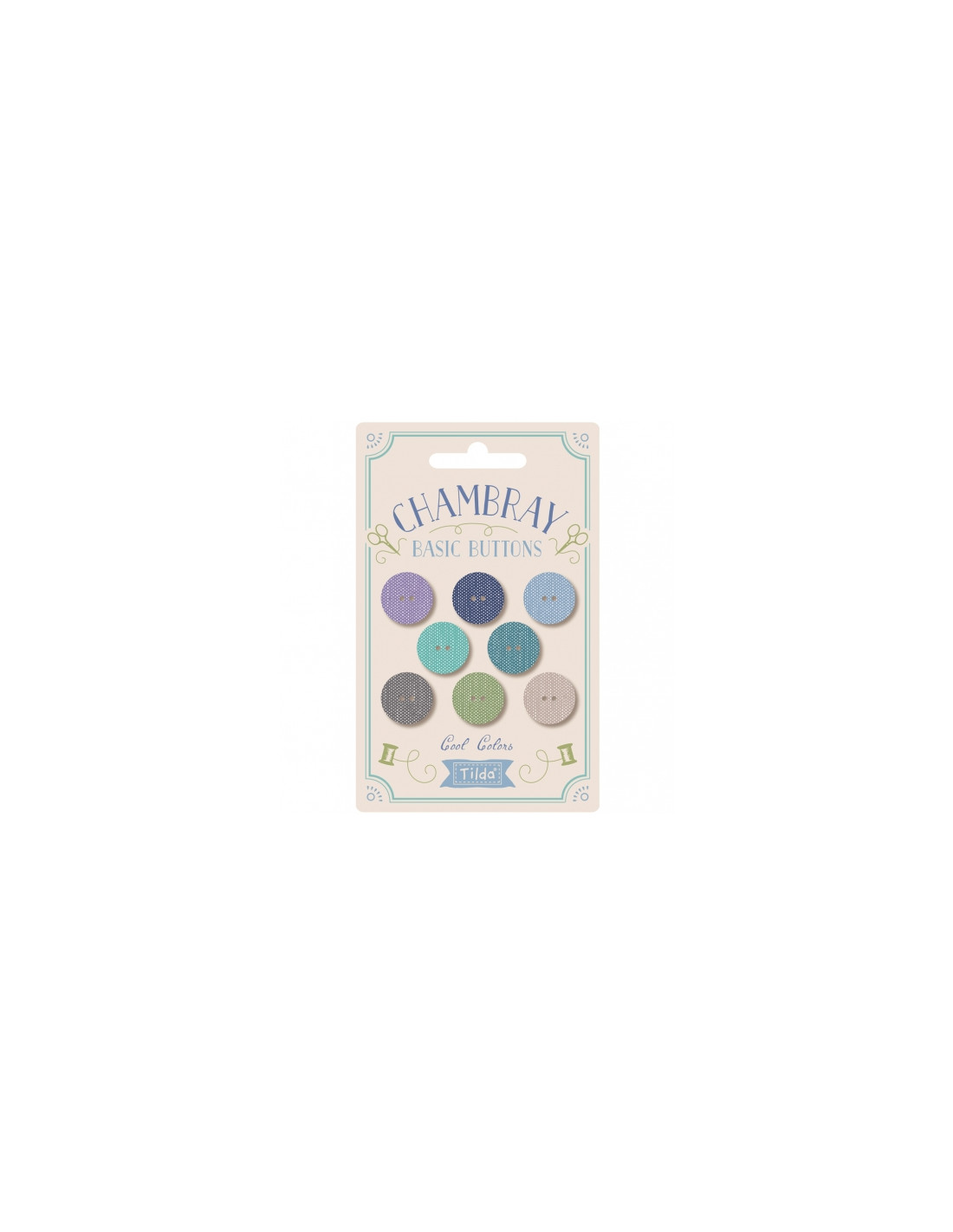 Tilda Chambray, 8 Bottoni da 16 mm Ricoperti in Tessuto Colori Freddi Tilda Fabrics - 1