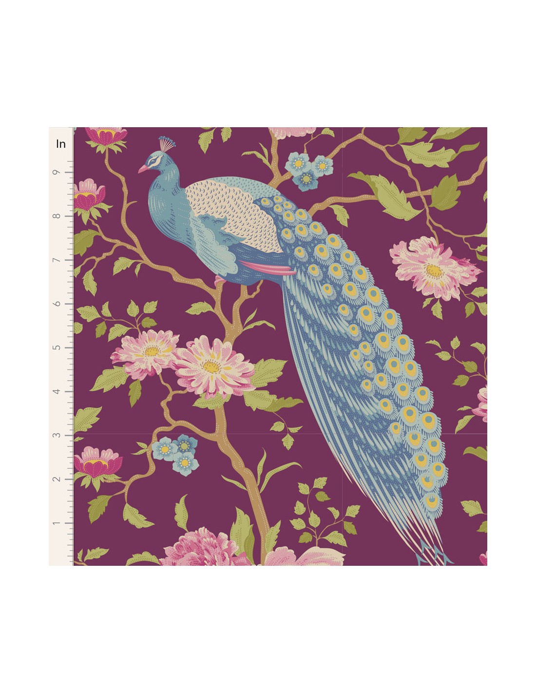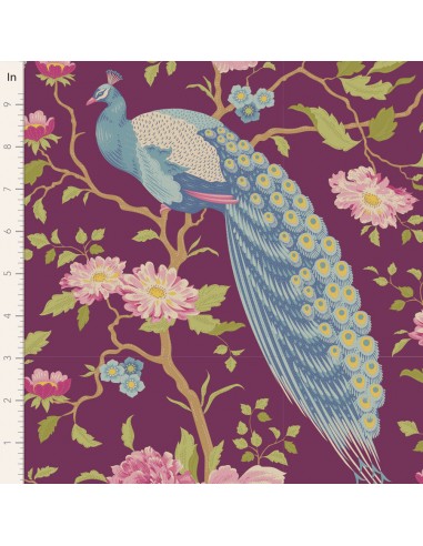 Tilda Chic Escape Peacock Tree Grape, Tessuto Viola con Pavoni