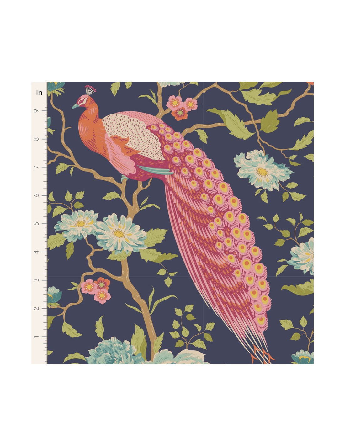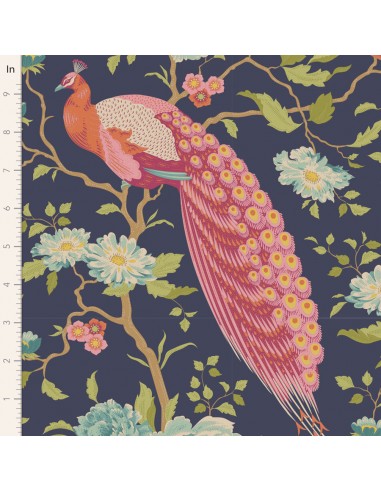 Tilda Chic Escape Peacock Tree Navy Blue, Tessuto Blu con Pavoni