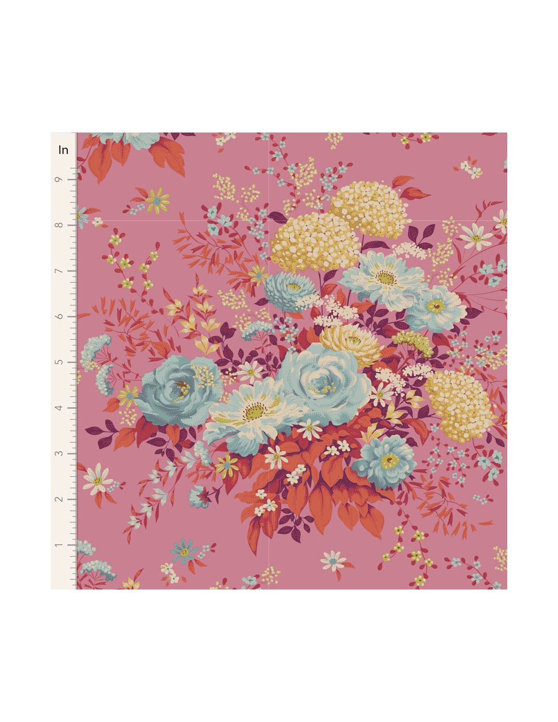 Tilda Chic Escape Wildgarden Pink, Tessuto Rosa con Bouquet di Fiori di Campo