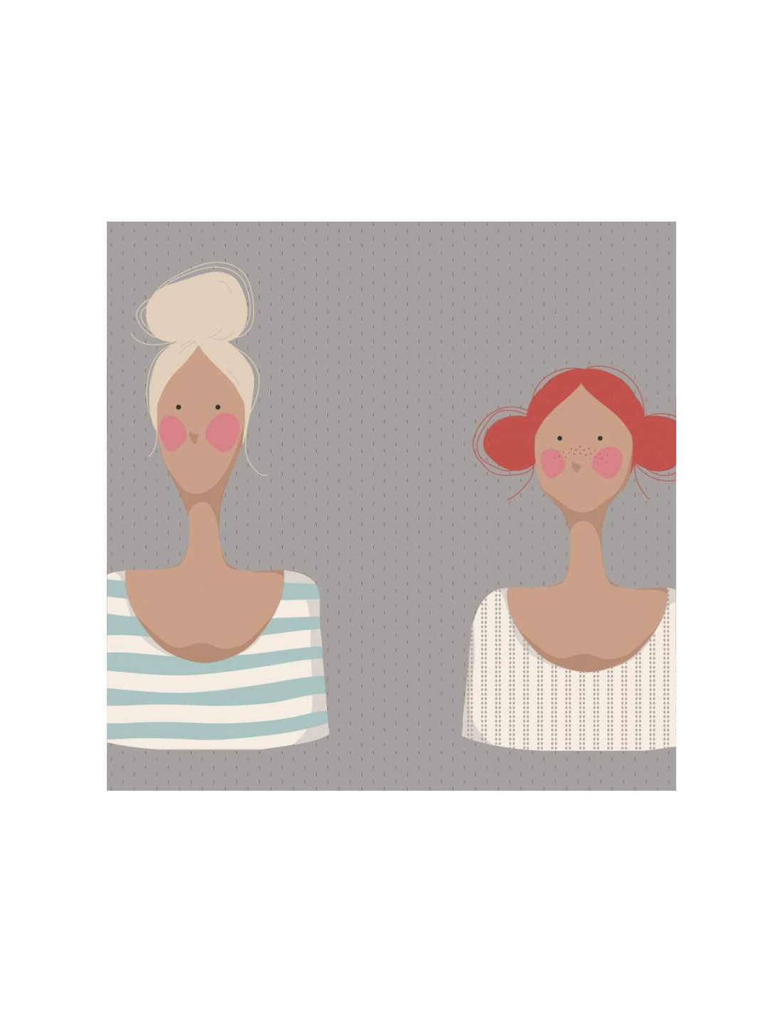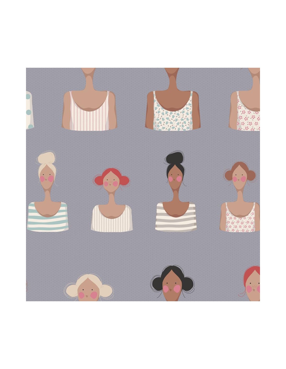 - Tessuto grigio ardesia con busti di signorine pronte per il mare