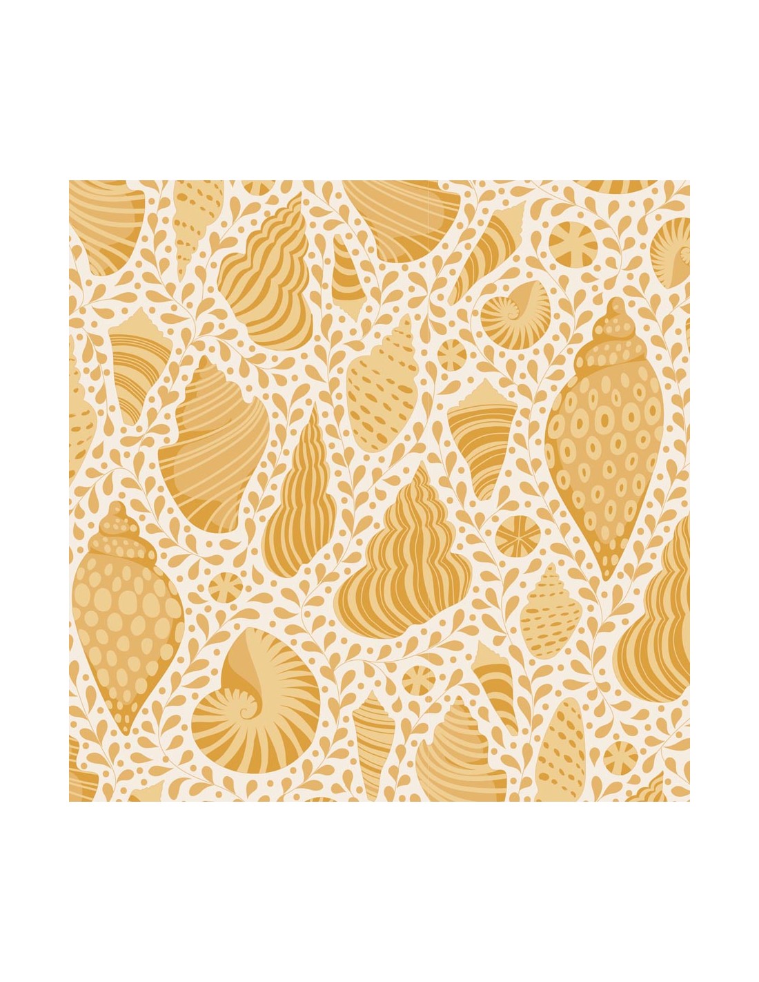 Tilda Cotton Beach Shells Honey, Tessuto Giallo con Conchiglie