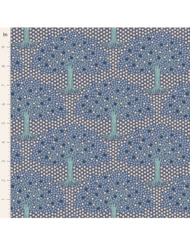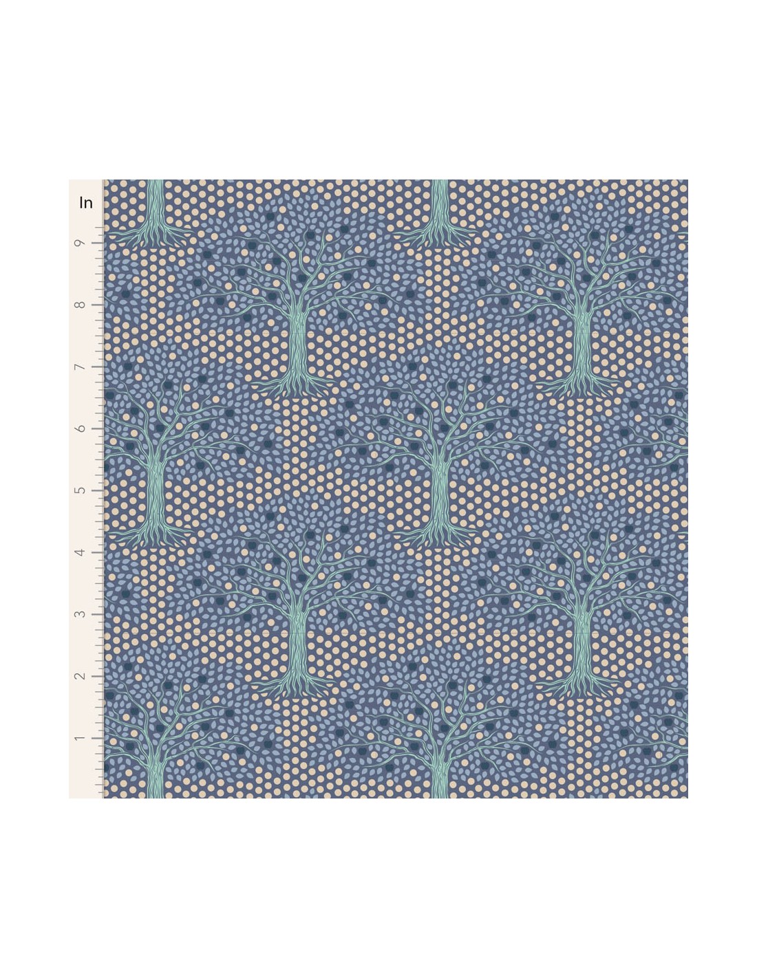 Tilda Hometown Applegarden Blue, Tessuto Blu con Alberi e Foglie