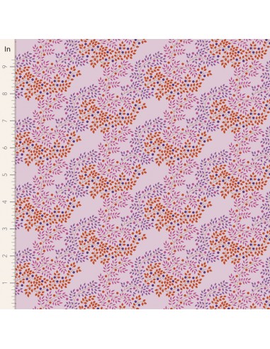 Tilda Hometown Berrytangle Plum, Tessuto Lilla con Rami Bacche e Foglie