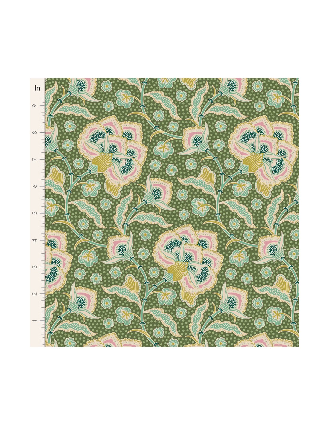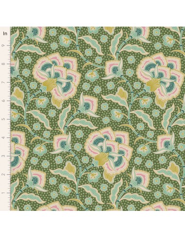 Tilda Hometown Eden Moss, Tessuto Verde con Grandi Fiori e Foglie