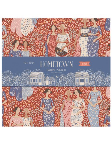 Pacchetto Charm Pack con 40 quadrati di tessuto della collezione Hometown disegnata da Tone Finnager.