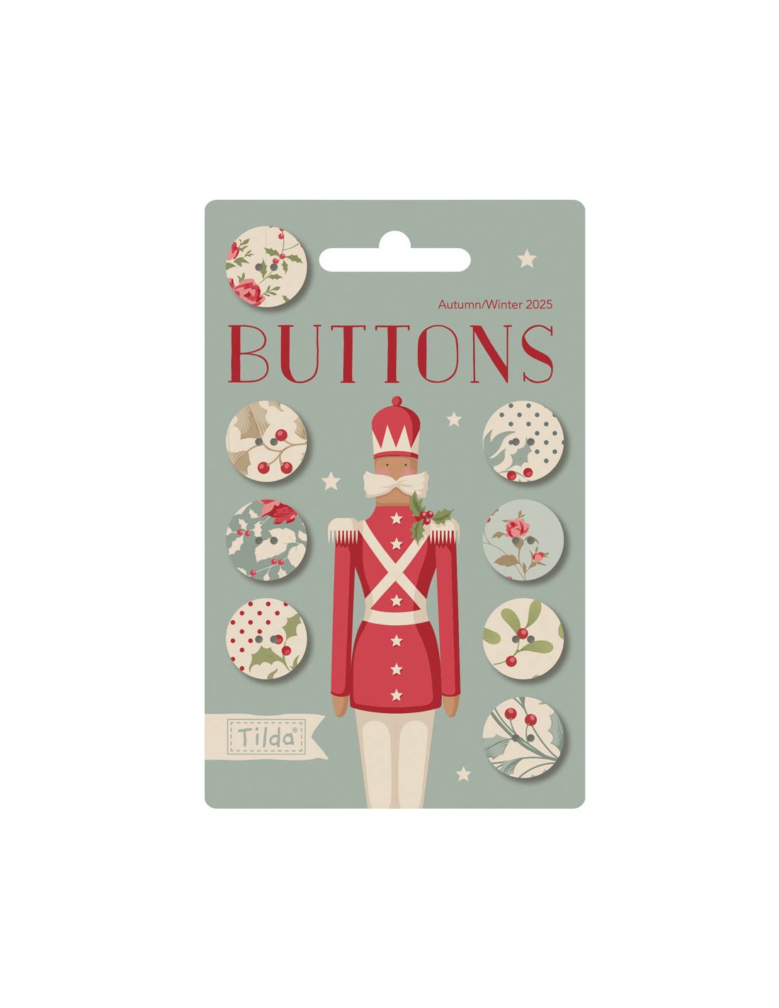 Bottoni ricoperti in tessuto Tilda della Collezione Merry Little Christmas disegnata da Tone Finnanger.