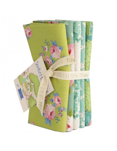 Tilda Sunday Brunch, 5 Fat Quarter Lime/Teal