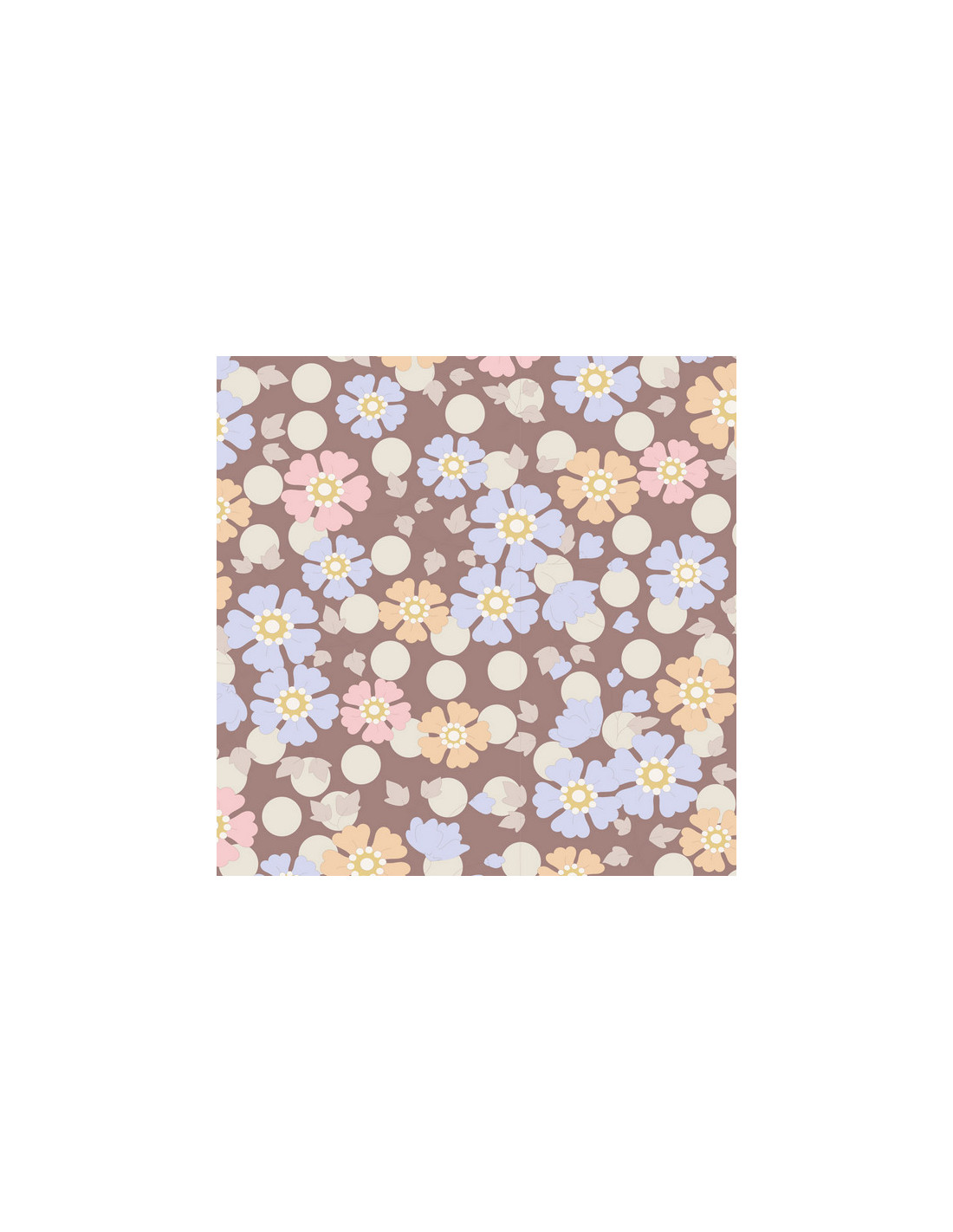colore:Windflower Nutmeg, fondo cappuccino con pois avorio e fiori vari rosa, azzurro confetto e arancio chiaro.