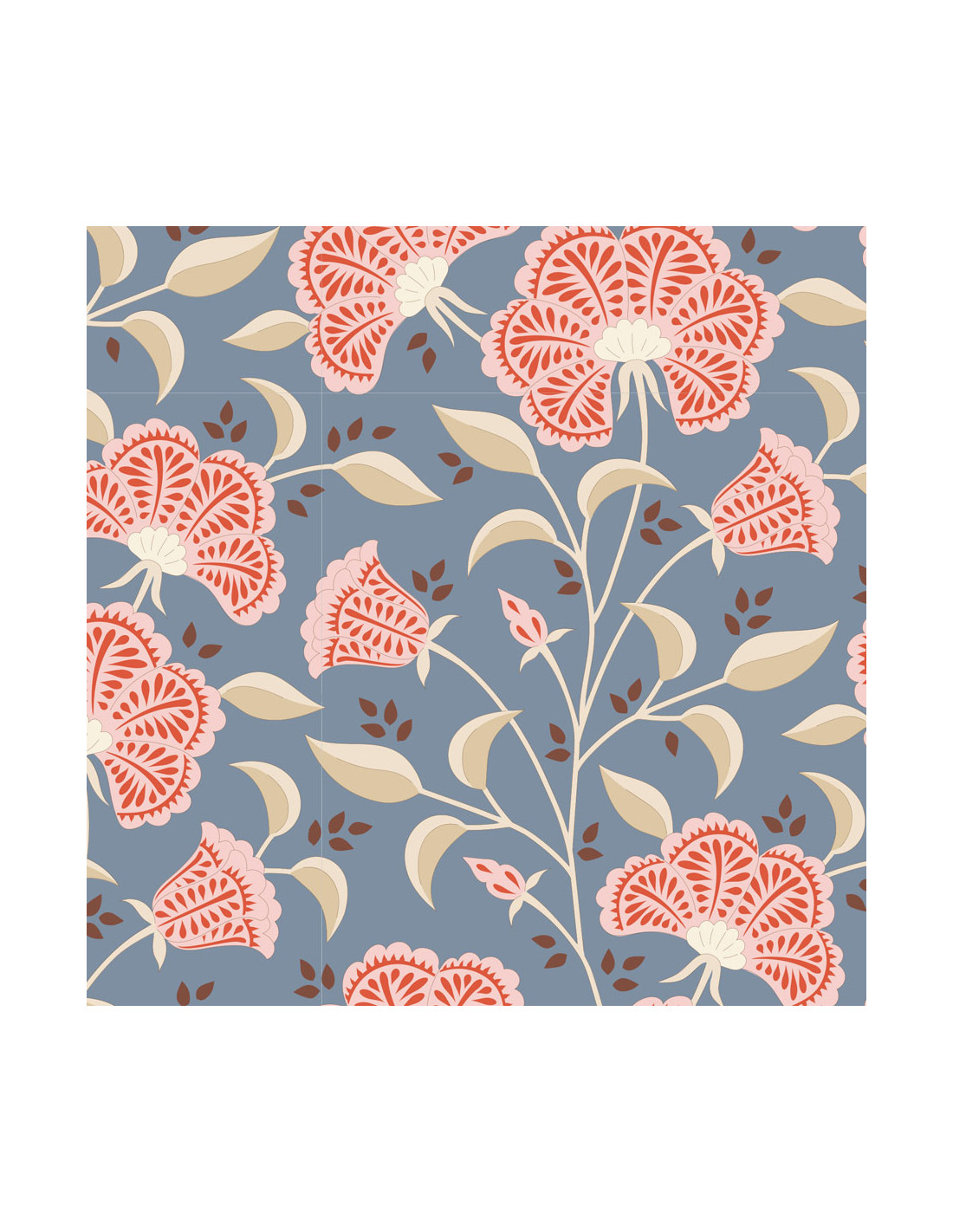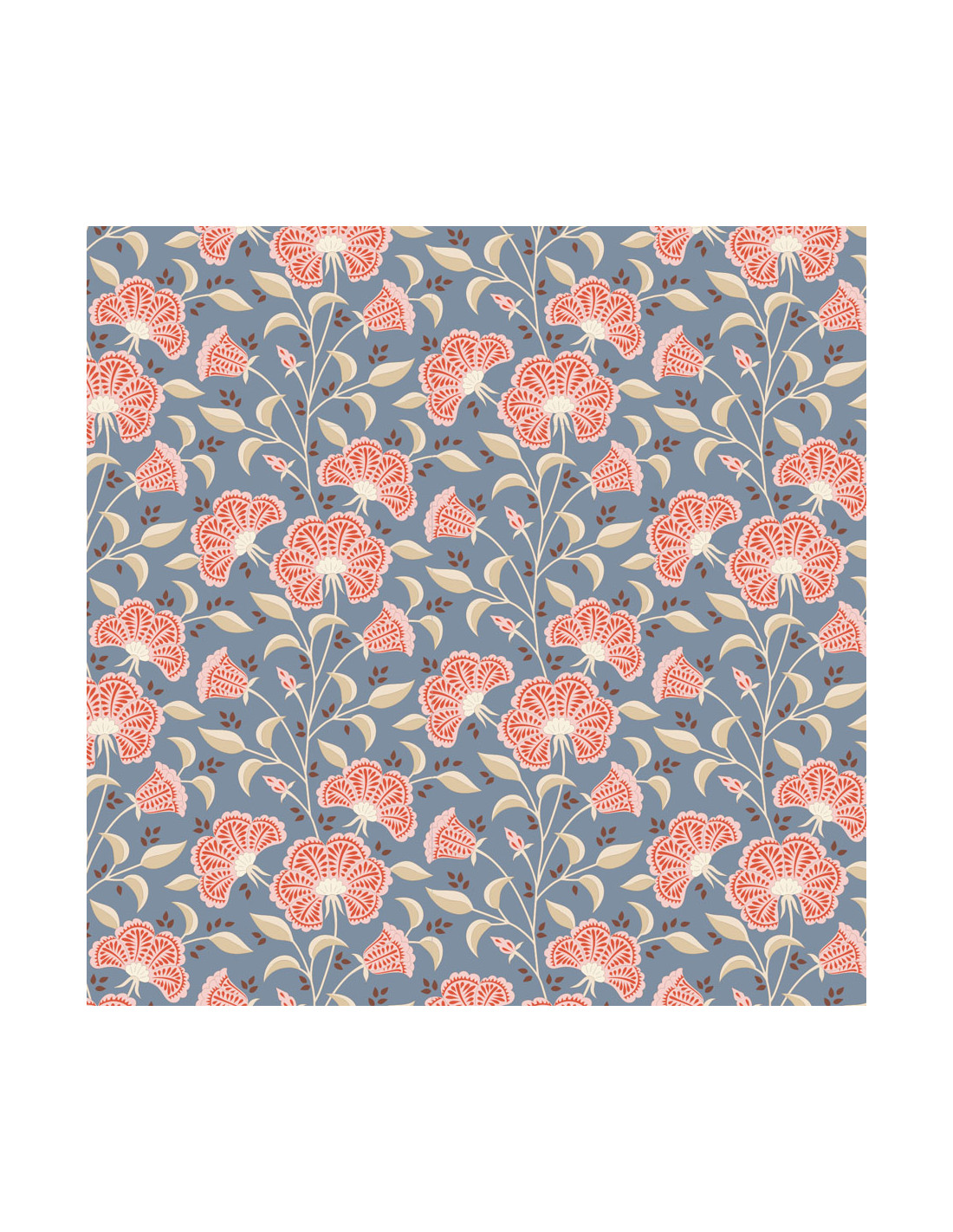 Tilda Windy Days Stormy Blue, Tessuto Blu con Fiori Rosa