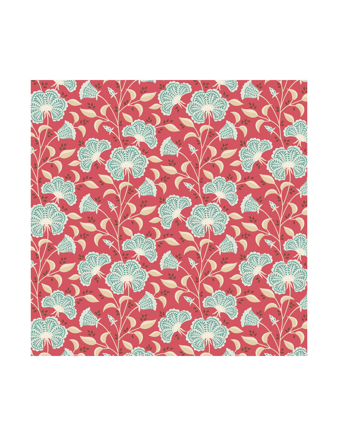 Tilda Windy Days Stormy Dusty Red, Tessuto Rosso con Fiori Chiari
