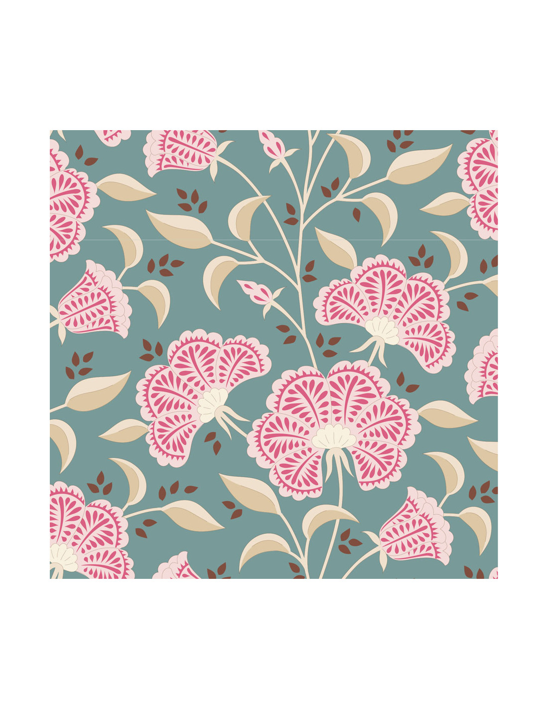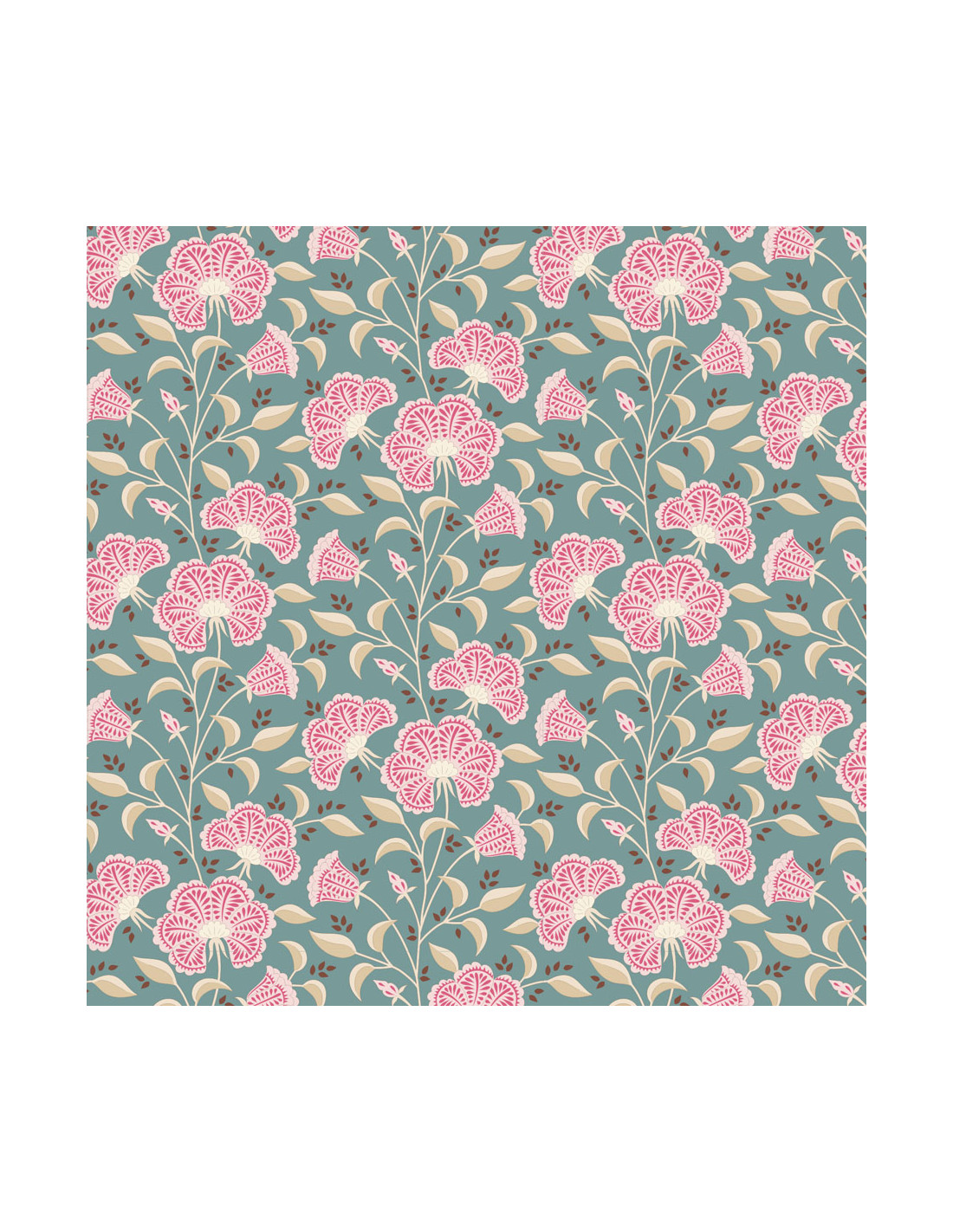 Tilda Windy Days Stormy Petrol, Tessuto Ottanio con Fiori Rosa