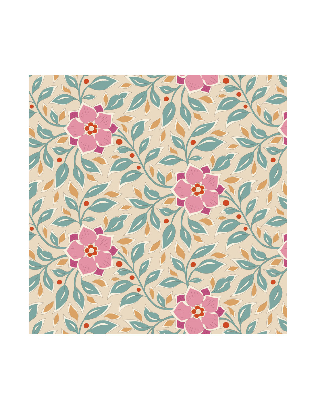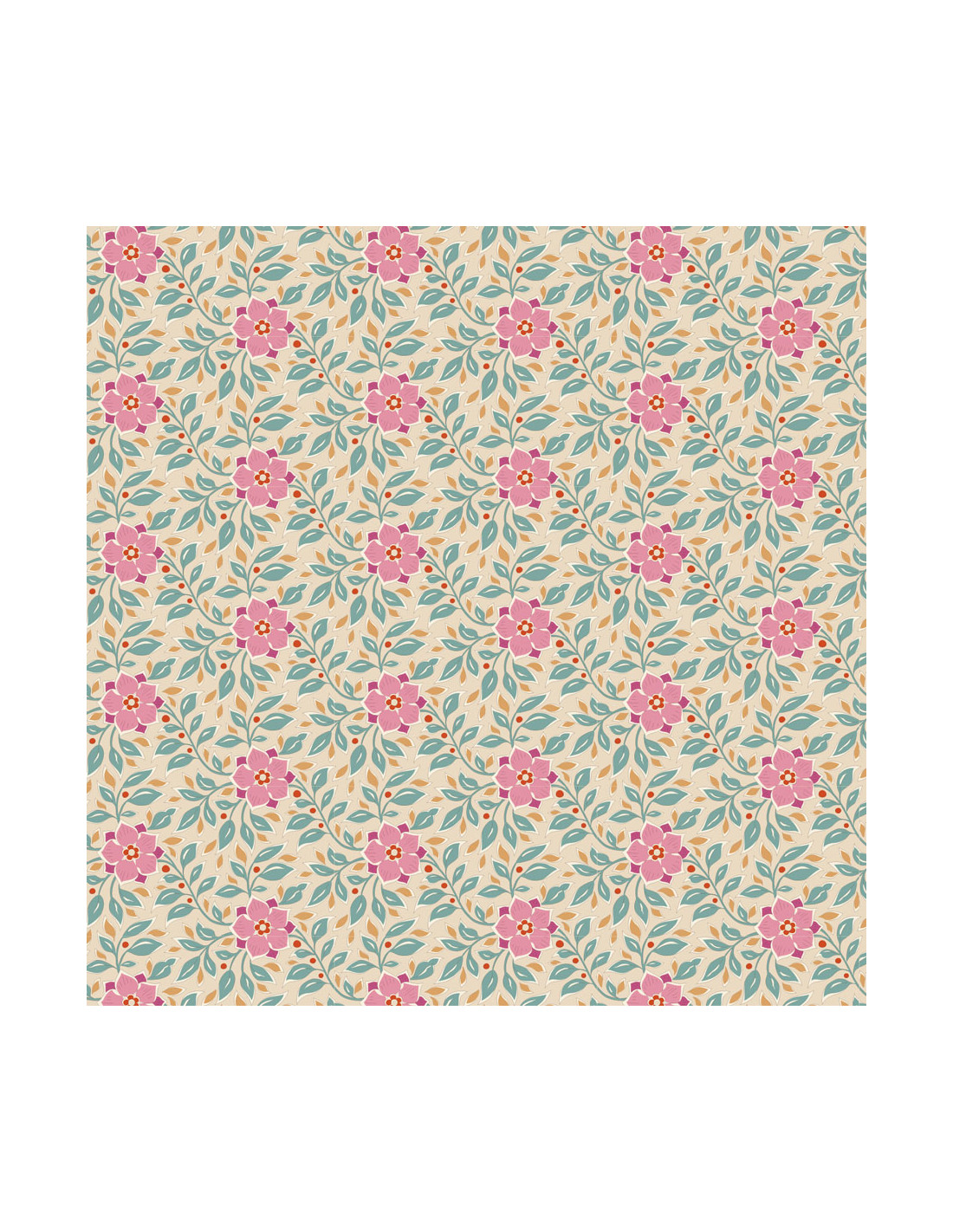 Tilda Windy Days Wendy Teal, Tessuto Panna con Fiori Rosa e Foglie Verde Acqua