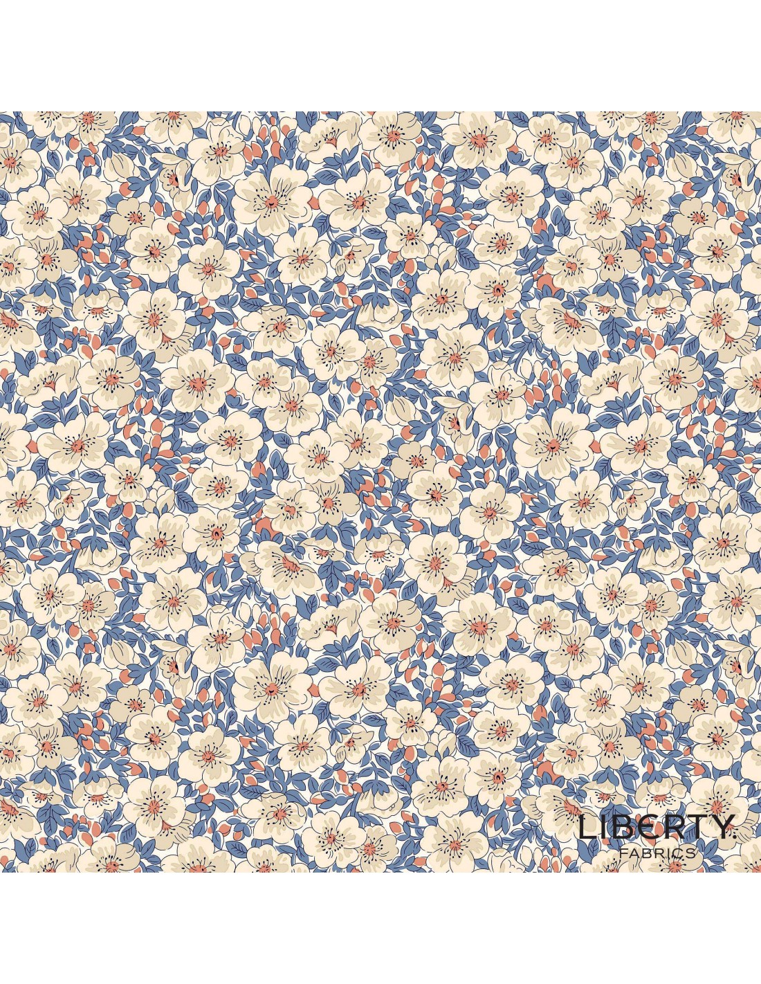 Tree of Life Dina Blossom Woodland Pastels, Tessuto Blu con Fioritura - Lyberty Fabrics