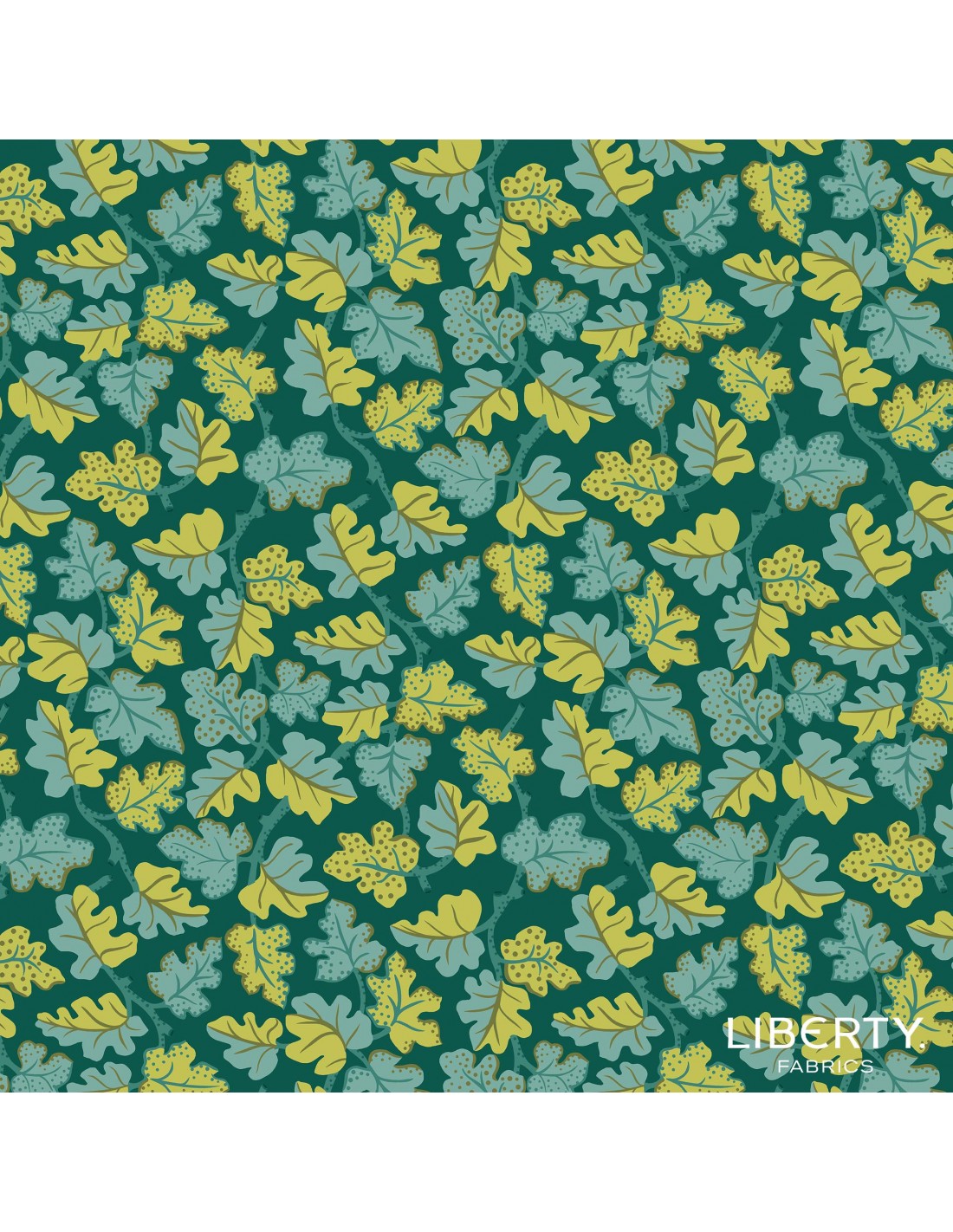 Tree of Life Spotted Oak Canopy Greens, Tessuto Verde con Foglie di Quercia - Lyberty Fabrics
