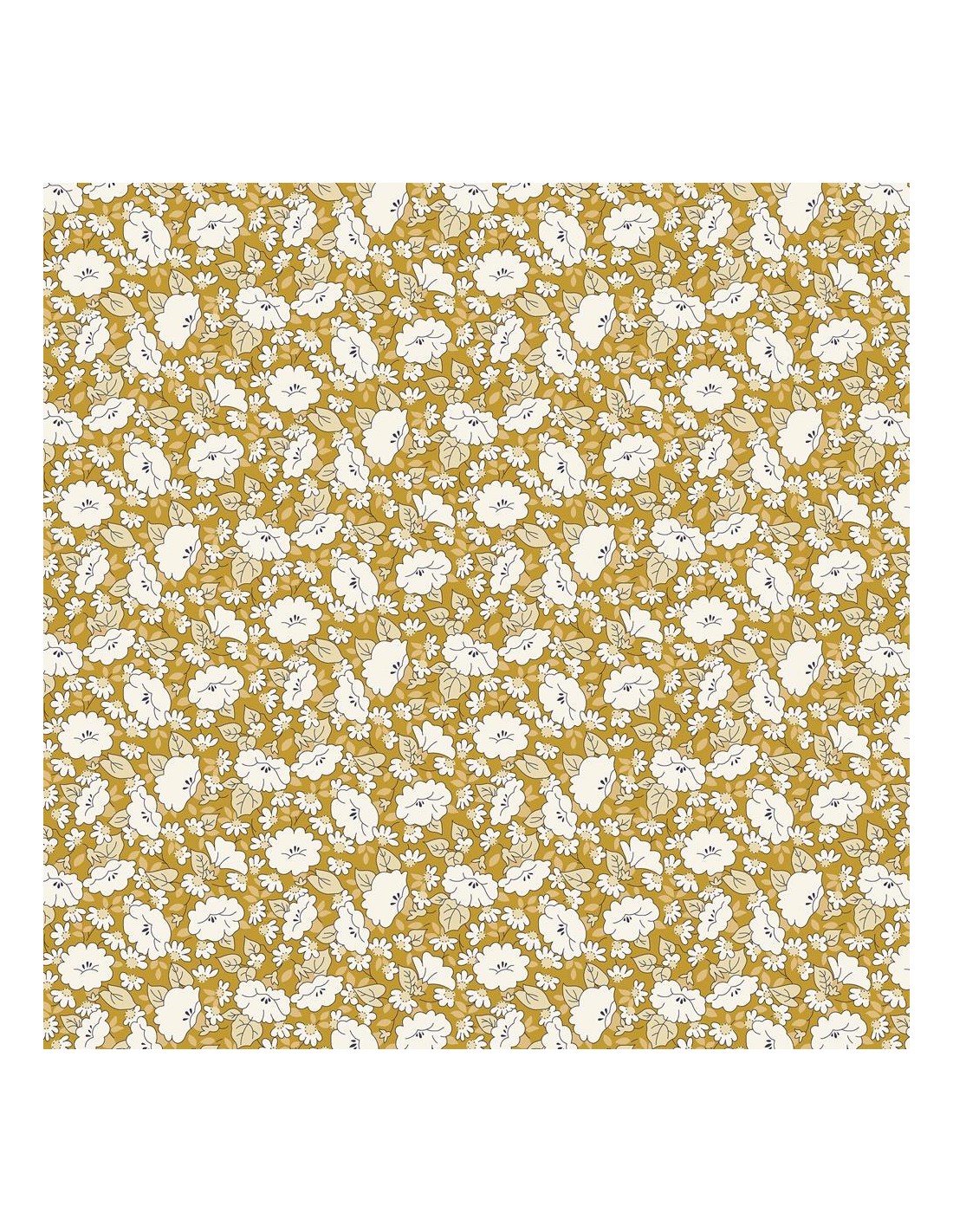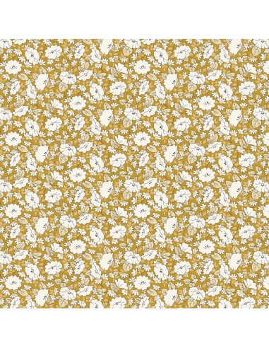 Tudor Celebration, Mayflower Meadow, Tessuto con fitti fiori chiari su fondo giallo senape - Liberty Fabrics