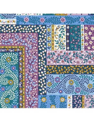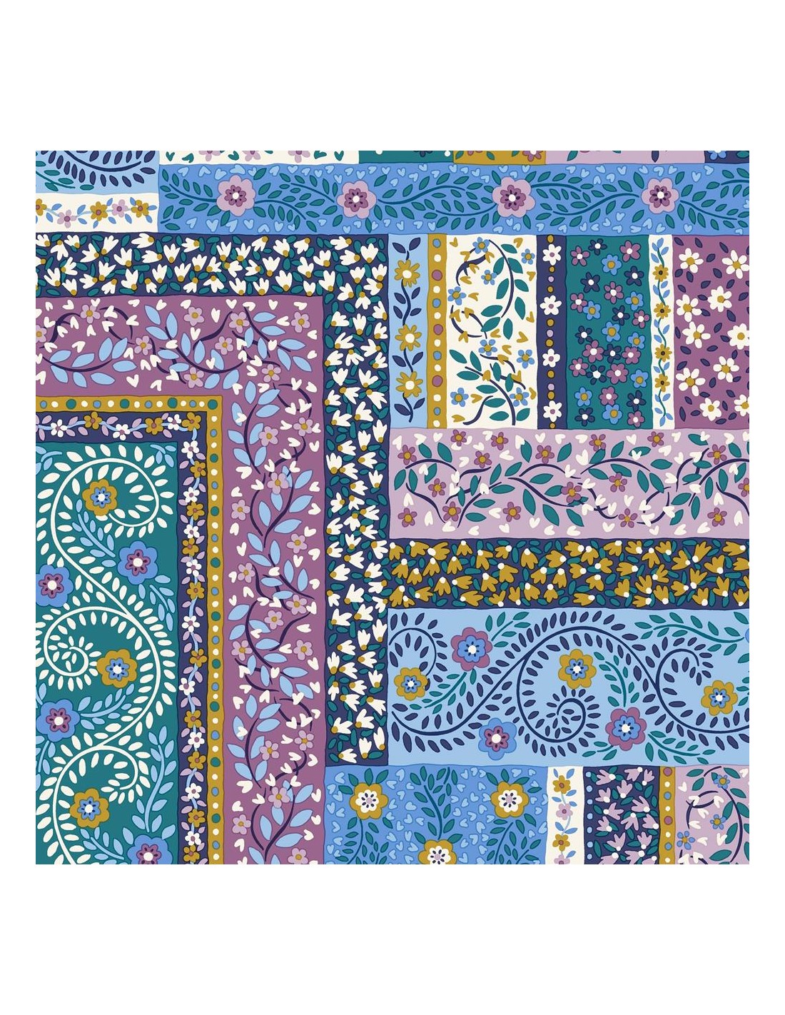 Tudor Celebration, Patchwork Scarves, Tessuto con stampa patchwork blu e viola - Liberty Fabrics