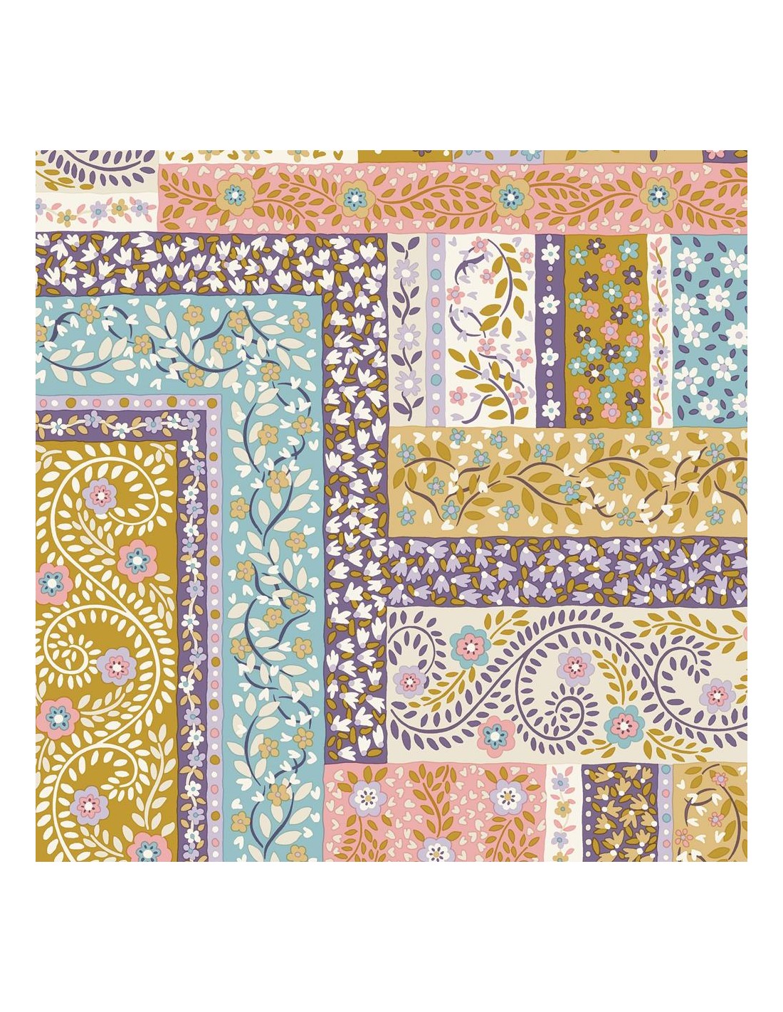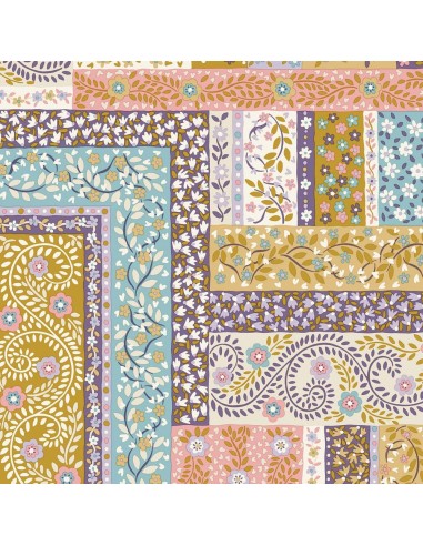 Tudor Celebration, Patchwork Scarves, Tessuto con stampa patchwork lilla e teal - Liberty Fabrics