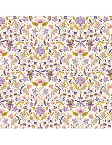 Tudor Celebration, Quilt Nouveau, Tessuto a fondo chiaro con ramage di fiori in giallo e lilla - Liberty Fabrics