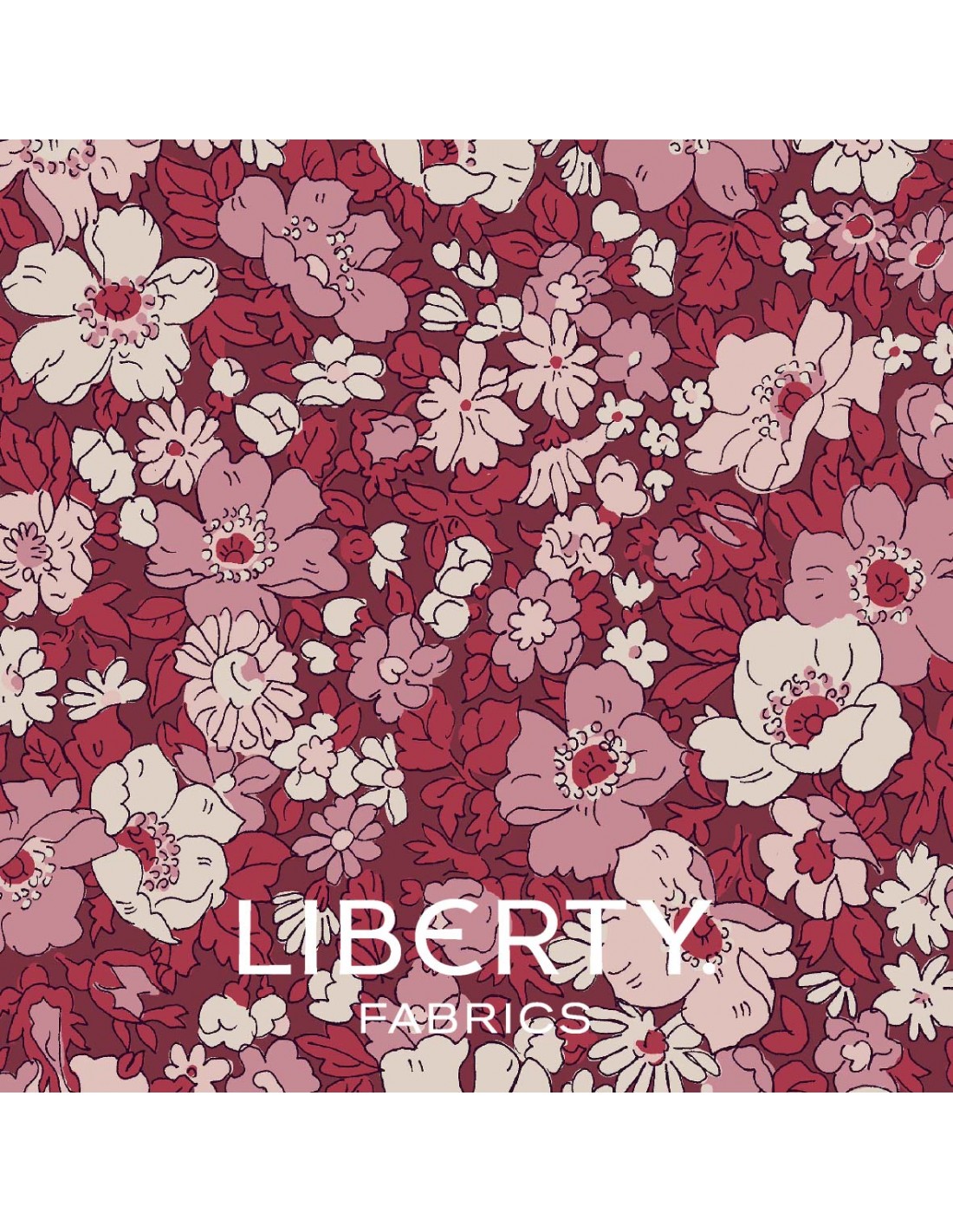 Wide Width 1 Cosmos Park, Tessuto Bordeaux con Margherite e Anemeno sul Prato - Liberty Fabrics