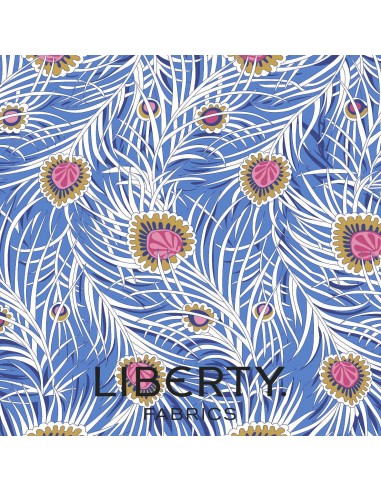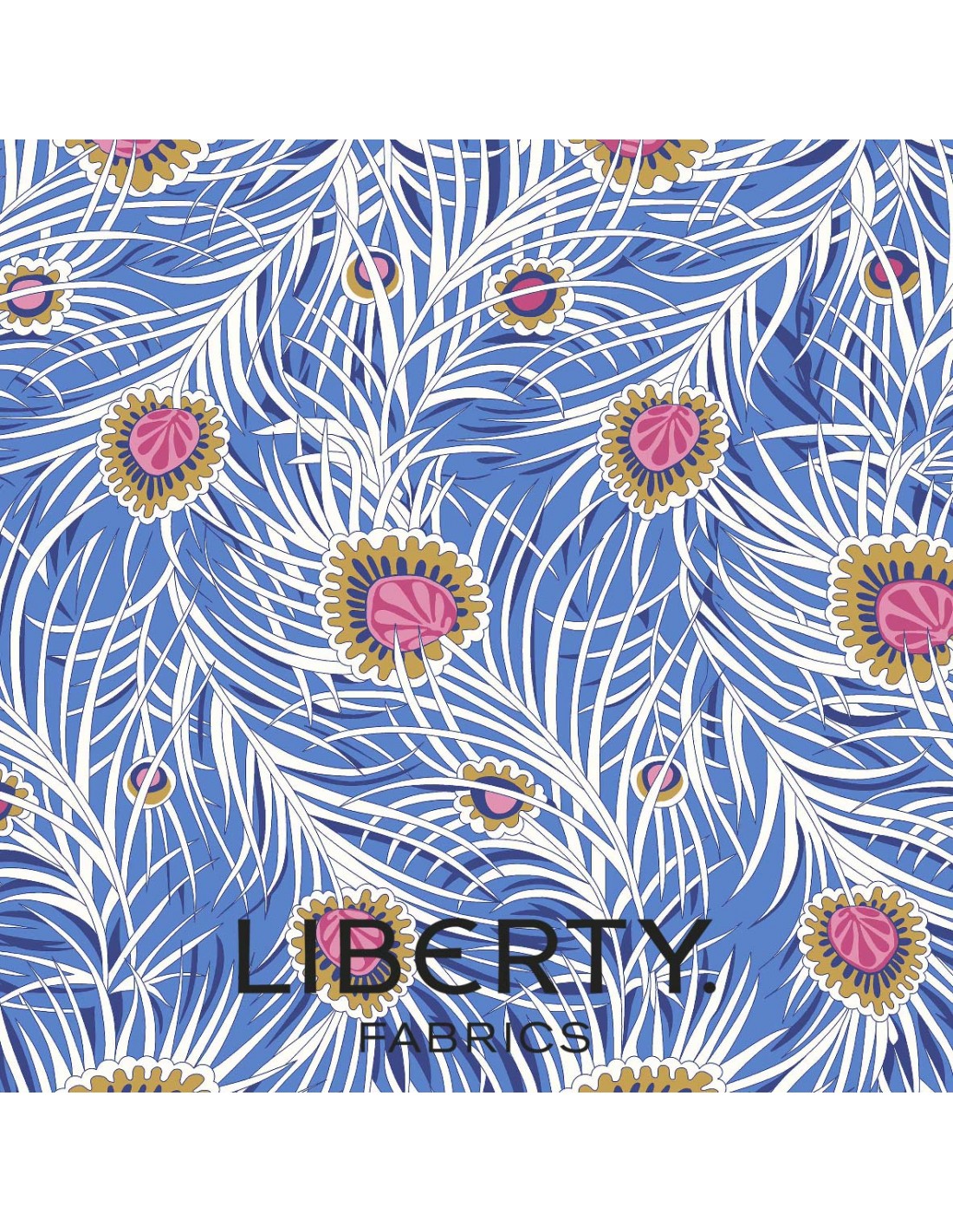 Wide Width 1 Peacock Dance, Tessuto Blu con Piume di Pavone - Liberty Fabrics